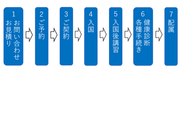 ・転入手続き、寮での指導、受入れ企業様へのお引渡しの配属業務は監理団体様にてご対応いただ